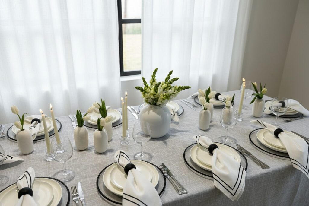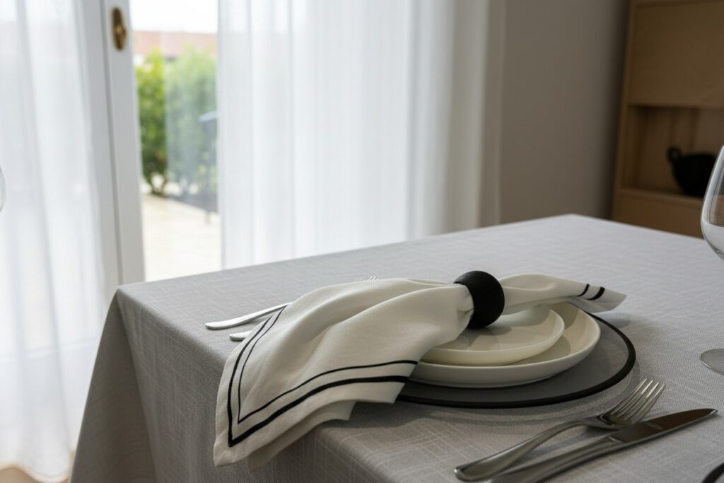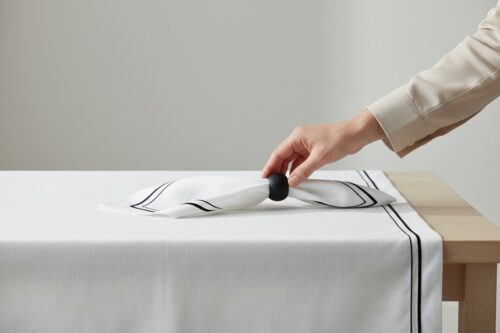 12 מפיות לבנות סיומת שחורה