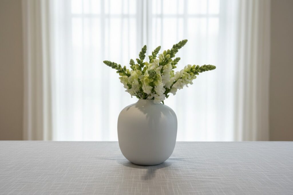 אגרטל לבן עם פרחים לבנים