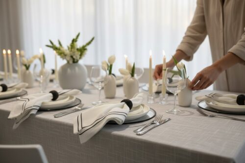 12 מפיות לבנות סיומת שחורה
