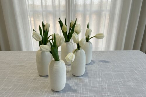 אגרטל לבן עם פרחים לבנים