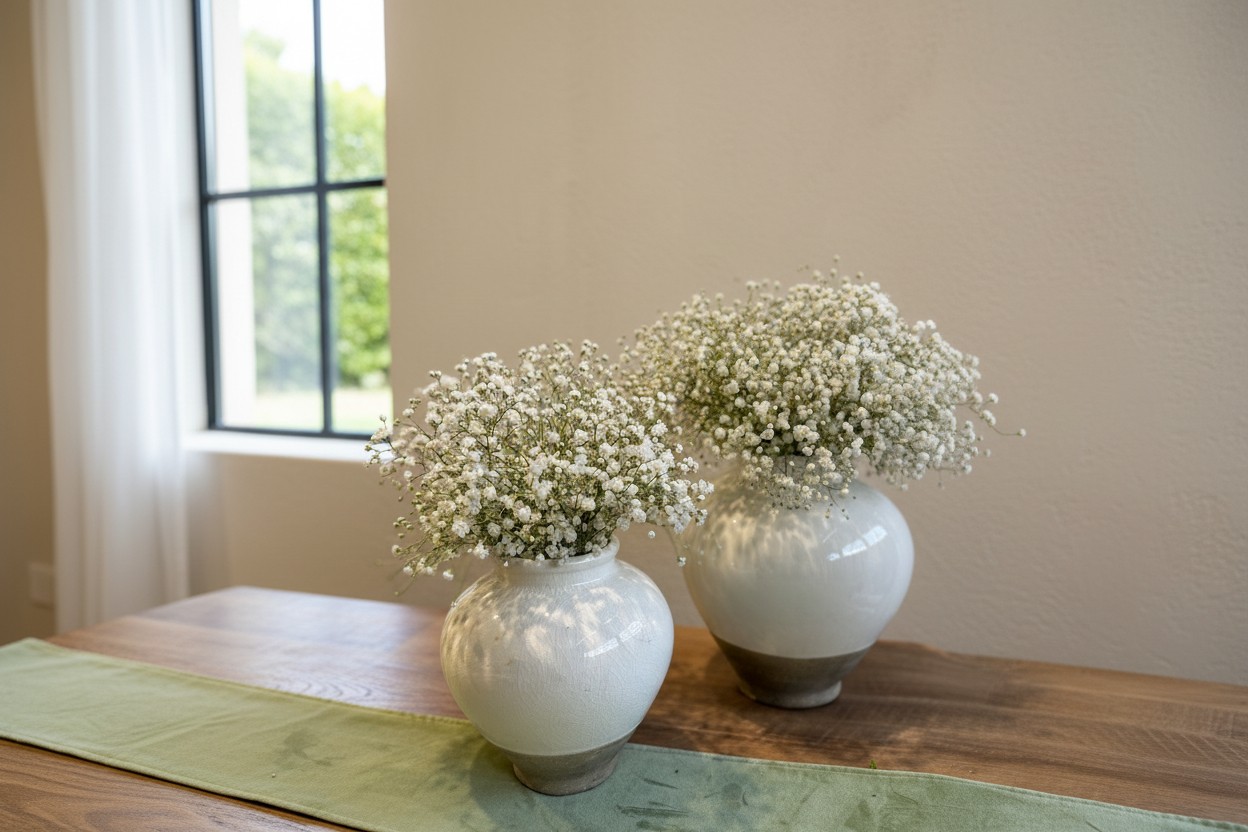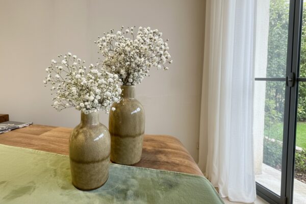 6 אגרטל זכוכית ירוק מנטה עם ענפי פרחים